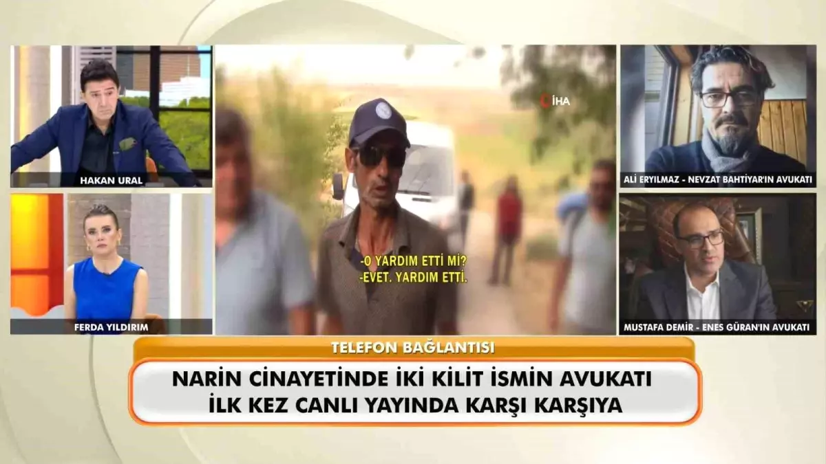 “Neler Oluyor Hayatta” programı Narin Güran cinayetiyle ilgili konuları gündeme getirdi. Hakan Ural ve Ferda Yıldırım’ın sunuculuğunu yaptığı programa davanın iki önemli ismi aynı anda bağlandı. Nevzat Bahtiyar’ın avukatı Ali Eryılmaz ve Enes Güran’ın avukatı Mustafa Demir, İlk kez bir televizyonda canlı yayında karşı karşıya geldi.