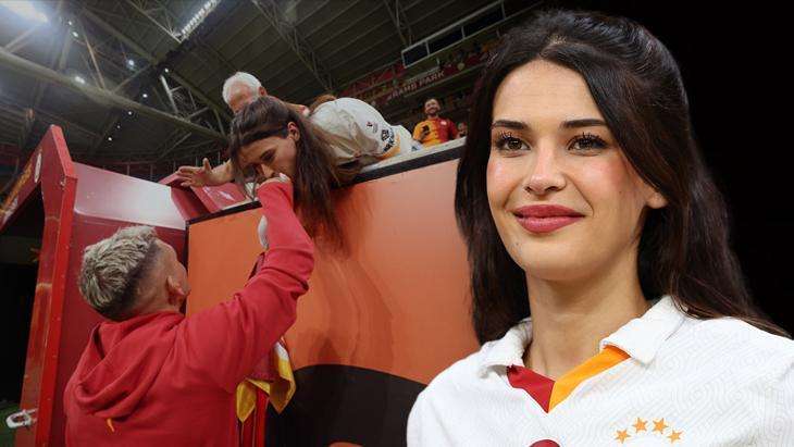 Lucas Torreira’nın takım arkadaşları ile birlikte maç öncesi zemin kontrolüne çıktığı sırada dikkat çeken anlar yaşandı. Lucas Torreira, tribündeki sevgilisi Devrim Özkan’ın yanına gitti.