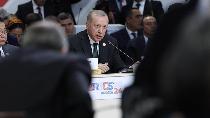 Rusya Federasyonu Devlet Başkanı Sayın Vladimir Putin’in davetine icabetle BRICS Zirvesi’ne katılmak üzere gerçekleştirdiğimiz Kazan ziyaretimizi tamamladık. Bu sabah yapılan genişletilmiş liderler oturumunda Ortadoğu’daki İsrail saldırganlığı başta olmak üzere, küresel, siyasi ve iktisadi meselelere dair tutumumuzu anlattım. Ayrıca ev sahibi Sayın Putin başta olmak üzere, zirveye katılan liderlerle ikili görüşmeler yapma fırsatım oldu. Bu çerçevede Venezuela Devlet Başkanı Sayın Maduro, Özbekistan Cumhurbaşkanı Sayın Mirziyoyev, Vietnam Başbakanı Sayın Pham Minh Chinh, Kongo Cumhurbaşkanı Sayın Sassou Nguesso ile bir araya geldik. Diğer liderlerle de ayrıca birebir görüşmelerim oldu. Bu temaslarımda İsrail’in bir an önce durdurulması için Birleşmiş Milletler başta olmak üzere, farklı platformlarda yürüttüğümüz çabalara destek istedim. Karşılıklı saygı ve kazan-kazan formülüyle BRICS’le ilişkilerimizi geliştirme noktasında neler yapılabileceğini ele aldık. Önemli kısmı bizim gibi G20 üyesi olan BRICS ülkeleri dünya yüzölçümünün yaklaşık yüzde 30’unu, nüfusunun yüzde 45’ini kapsıyor. Küresel petrol üretiminin yüzde 40’ı, mal ihracatının yüzde 25’i, ticaretin 5’te 2’si de yine BRICS ülkeleri tarafından gerçekleştiriliyor. Sadece bu veriler bile BRICS platformunun ekonomik açıdan önemini göstermektedir. Türkiye de kendi menfaatleri ekseninde BRICS ile iş birliğini önümüzdeki dönemde de ilerletme arzusundadır. Bu düşüncelerle ziyaretimizin ve temaslarımızın hayırlara vesile olmasını diliyor, şimdi de sizleri dinlemek istiyorum.