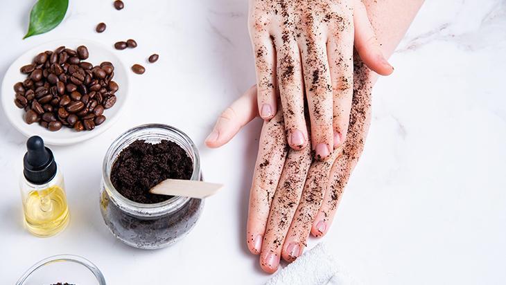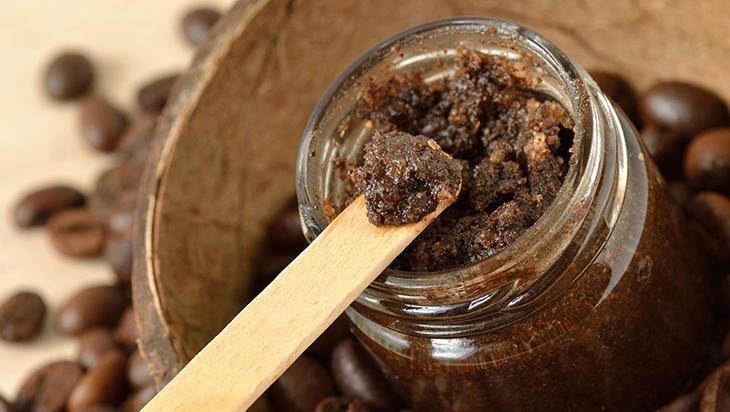 Kahve telvesi, cildi nazikçe soyarken, hindistancevizi yağı cildinizi nemlendirir. 2 yemek kaşığı kahve telvesi ve 1 yemek kaşığı hindistancevizi yağını karıştırın.