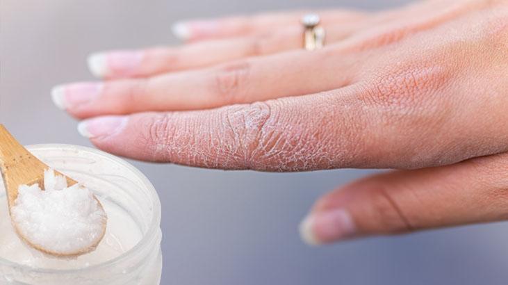 Hindistancevizi yağı, kuru ciltler için etkili bir çözümdür. Yatmadan önce ellerinize bir miktar hindistancevizi yağı sürün ve pamuklu eldiven giyin.