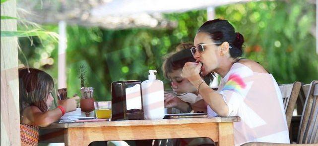 Eşinin ani vefatının akabinde Köyceğiz’deki konutundan taşınıp İzmir’de yaşamaya başlayan oyuncu Ortakent’teki bir otelde çocukları ile birlikte kahvaltı yaparken objektiflere takıldı.