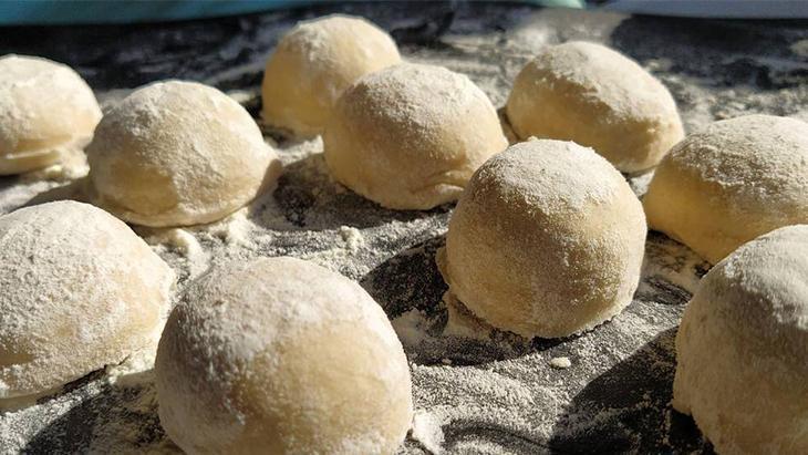 Unu yavaş yavaş ekleyin ve vanilyayı da ilave ettikten sonra, ele yapışmayacak bir hamur elde edene kadar yoğurun. Hamurun bir kısmını alarak uzun bir silindirik şekil verin ve üzerine bir çatalla uzun çizgiler çizin.