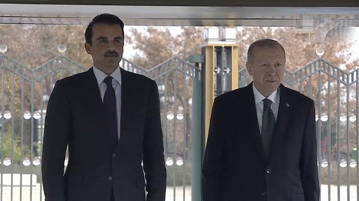 Cumhurbaşkanı Erdoğan, Al Sani’yi külliyenin ana giriş kapısında karşıladı. Erdoğan ve Al Sani’nin tören alanındaki yerlerini almasının ardından 21 pare top atışı eşliğinde milli marşlar çalındı.